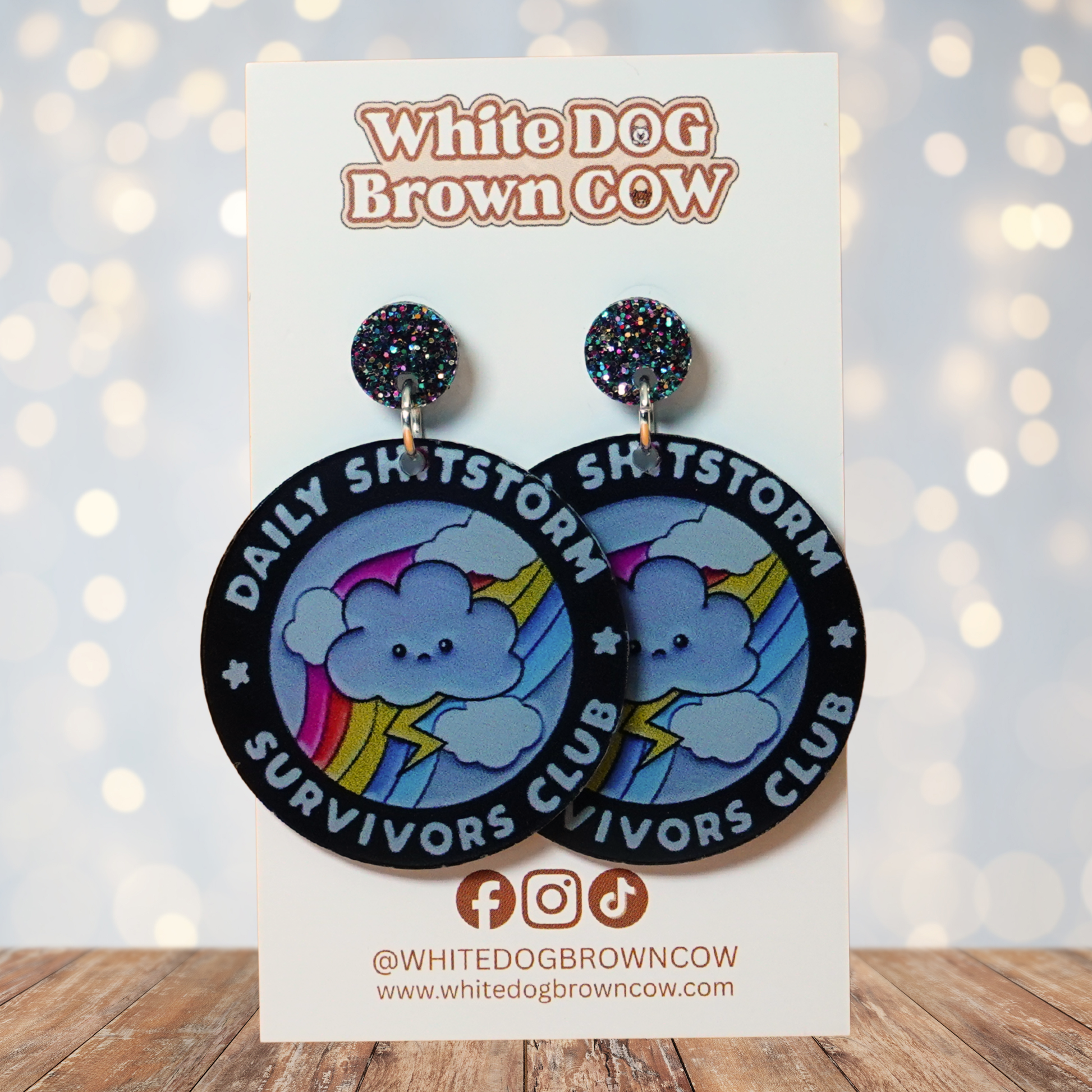 🌈 When life serves you a fresh storm every single day, you might as well accessorise accordingly. These earrings turn the struggle into a badge of honour - complete with a cute storm cloud, bold rainbow, and sparkly glitter studs. Equal parts relatable and ridiculous, they’re the ultimate earrings for anyone who powers through the chaos with humour, colour, and questionable coping mechanisms.