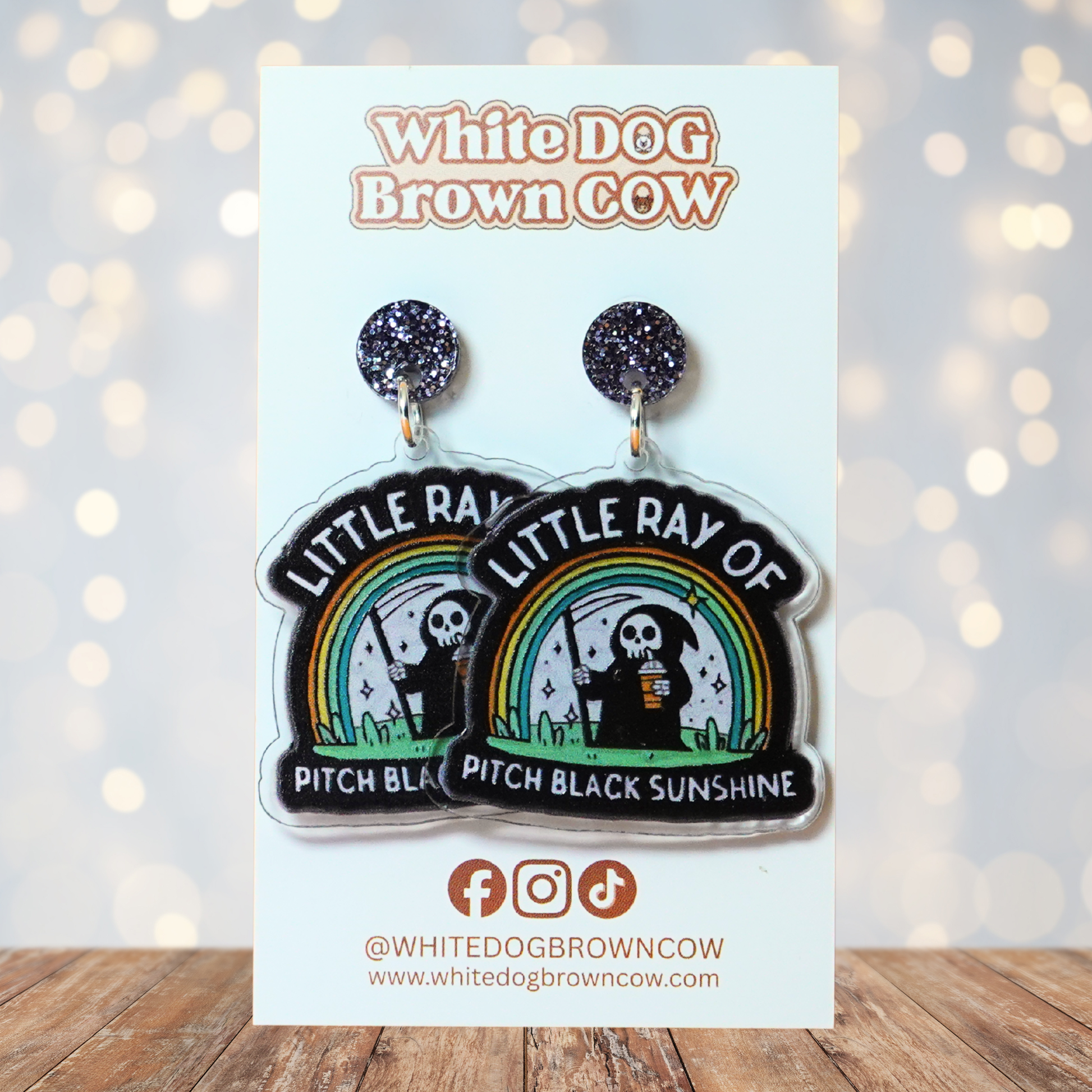 💀 For the babes who radiate… something. These earrings blend dark humour with unexpected cuteness - featuring a tiny grim reaper, a cheerful rainbow, and glittery black studs for maximum moody sparkle. They’re the ideal accessory for anyone whose personality is 50% sunshine, 50% existential dread, and 100% iconic.