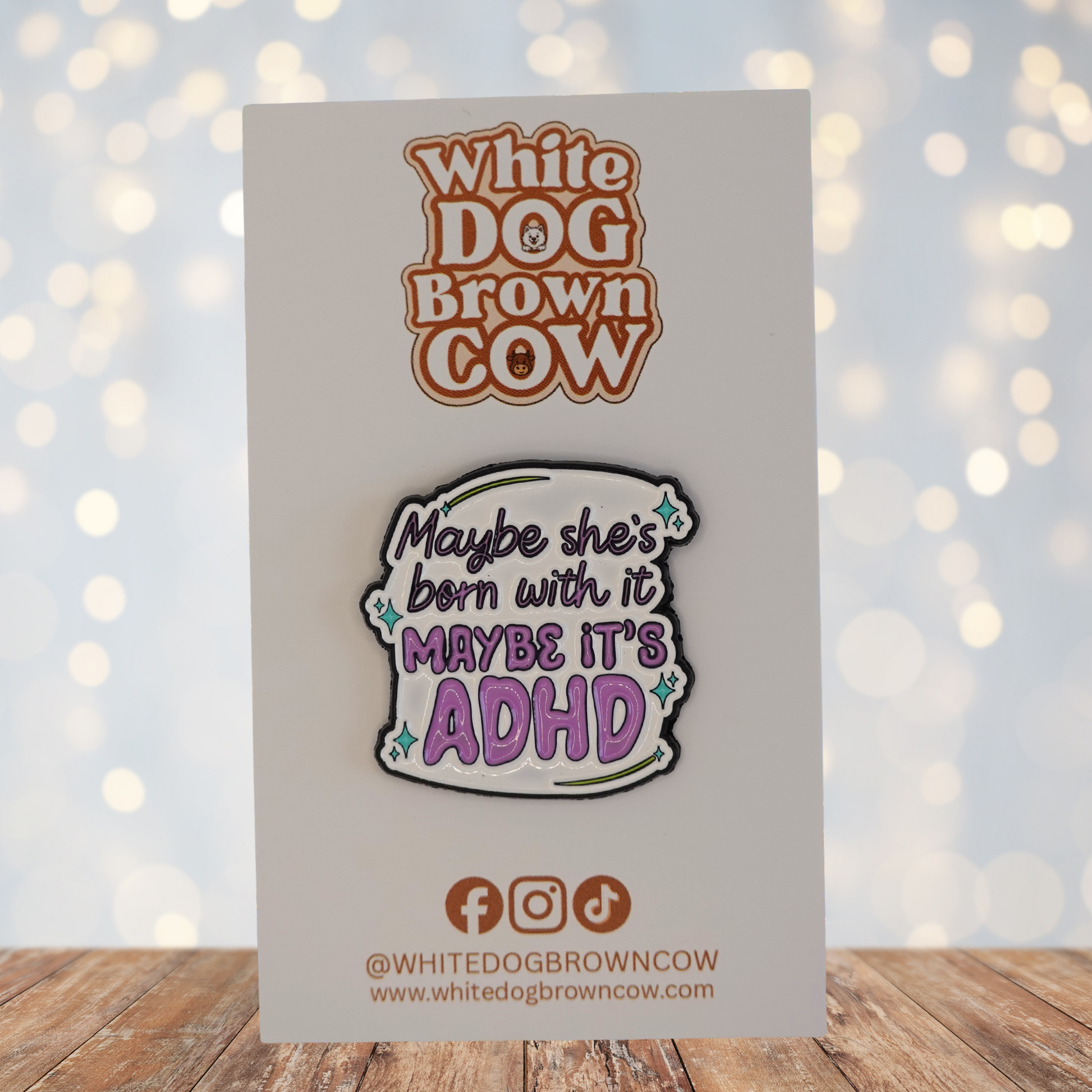 ✨ A cheeky twist on the classic slogan, this pin celebrates the chaos, creativity, and charm that come with a brain that never quite sits still. Equal parts glam and unmedicated energy.