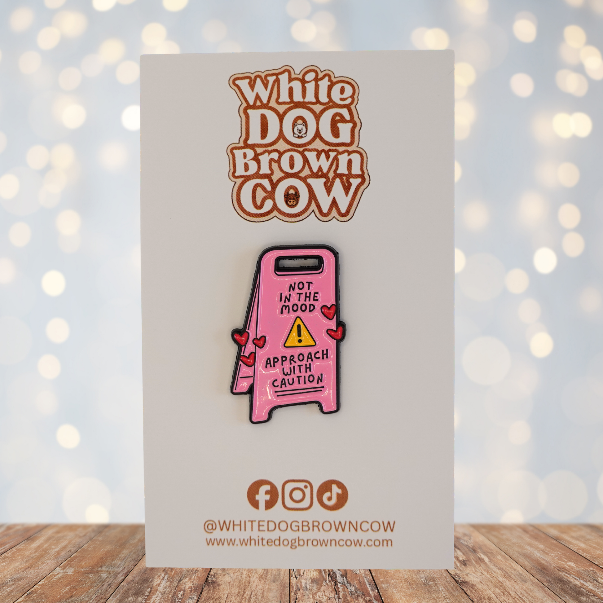 💗 For the days when your patience is on backorder - this “Not in the Mood, Approach with Caution” pin is your wearable warning sign. Cute enough to soften the message, but clear enough to keep people at arm’s length.